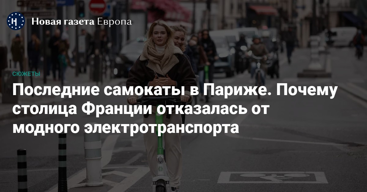 Пять лет назад Париж стал первым крупным европейским городом, развернувшим масштабную сеть кикшеринга — так называют сервис по аренде самокатов с электроприводом. Первого сентября этот эксперимент завершается: все действующие в городе операторы электросамокатов прекращают работу. Причиной, побудившей власти отказаться от безуглеродного транспорта, перевозившего до 400 тысяч человек в месяц, стали многочисленные аварии, а формальным основанием — волеизъявление парижан. Правда, и к статистике происшествий, и к организации голосования есть вопросы.