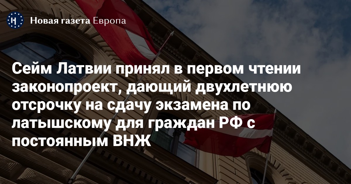 Сейм Латвии принял в первом чтении поправки к иммиграционному закону, которые дают гражданам России, не сдавшим экзамен по латышскому языку, два года отсрочки, сообщается на сайте латвийского парламента.