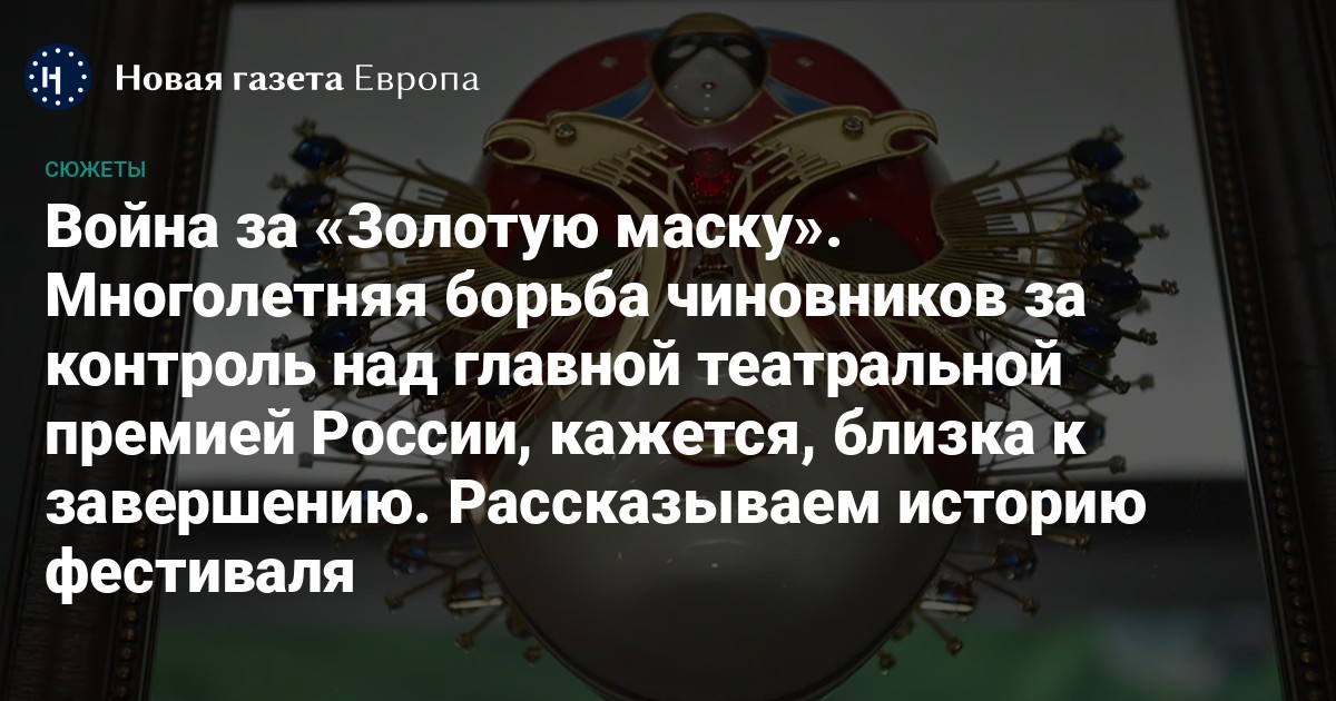 14 сентября в Союзе театральных деятелей (СТД) прошло первое заседание рабочей группы по разработке проекта нового положения о премии и фестивале «Золотая маска». Многолетняя и упорная борьба чиновников с профессиональным театральным сообществом за контроль над премией близка к завершению, и окончательные ее итоги, к сожалению, уже кажутся понятными. «Новая газета Европа» рассказывает, почему «Золотая маска» была так важна для российского театра, почему чиновники мечтали ее реформировать и что в итоге от нее останется.