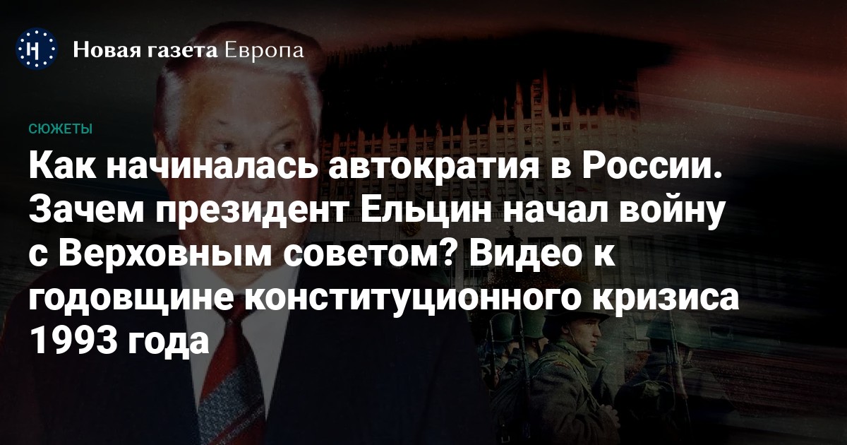 Зачем президент Ельцин начал войну с Верховным советом? На чьей стороне оказалась Конституция? И как это повлияло на зарождение путинского режима? Смотрите в видео «Новая газета Европа».