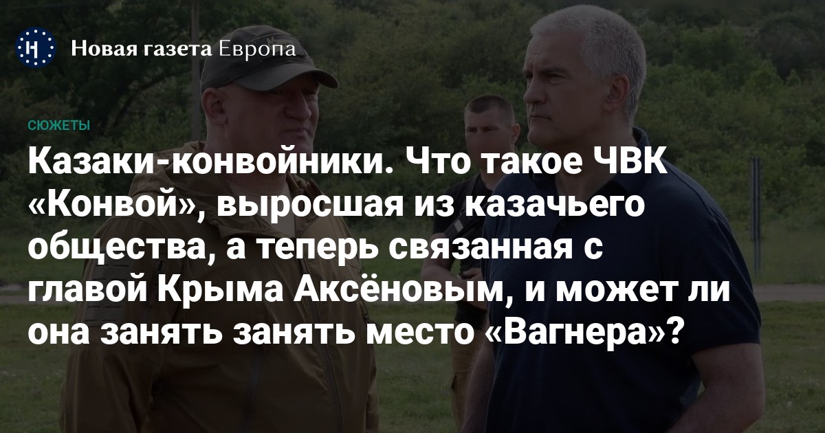 Прошлой осенью ЧВК «Конвой», зарегистрированная петербургским казачьим обществом, объявила набор добровольцев. Сейчас основная база «Конвоя» находится в Крыму, а его наемников называют аксеновцами — по имени главы Крыма Сергея Аксёнова. «Новая газета Европа» разбирается, что стоит за новым квазивоенным формированием, эффективно ли оно, и зачем это нужно главе полуострова.