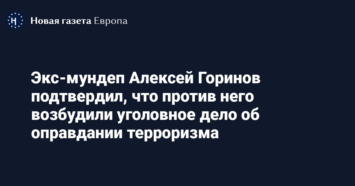 Бывшего московского муниципального депутата Алексея Горинова, осужденного на семь лет колонии по статье о военных «фейках», перевели в штрафной изолятор СИЗО во Владимире из-за возбуждения в отношении него уголовного дела об оправдании терроризма. Об этом сообщила группа поддержки политика.
