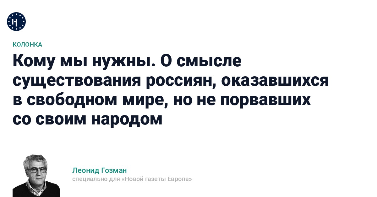 А как здесь жить, а не выживать тем, кто не готов перечеркнуть свою предыдущую жизнь, отказаться от всего, что было дорого? Да, там ужасно, «но есть еще Черная речка…» — это Галич, которому 19 октября, когда я это пишу, исполнилось 105 лет. Кому мы здесь нужны?
