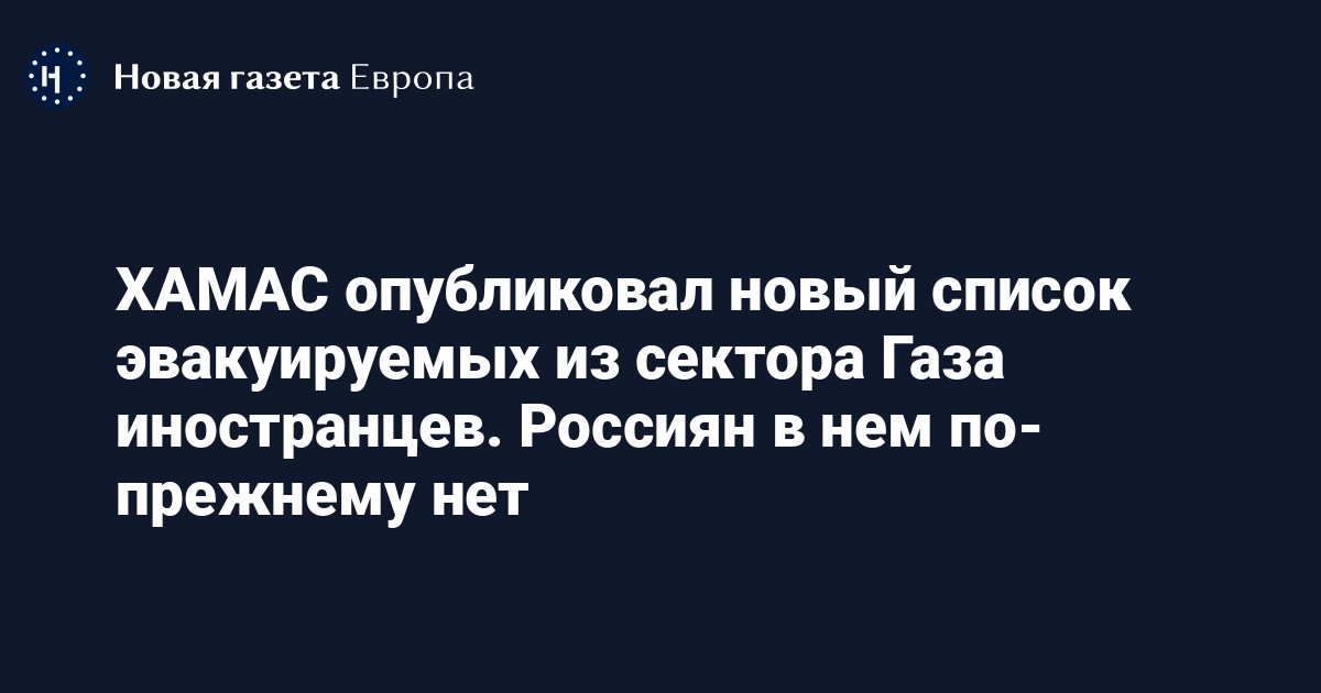 ХАМАС опубликовал новый список иностранцев и палестинцев с двойным гражданством, которым разрешено покинуть сектор Газа через КПП «Рафах» на границе с Египтом.