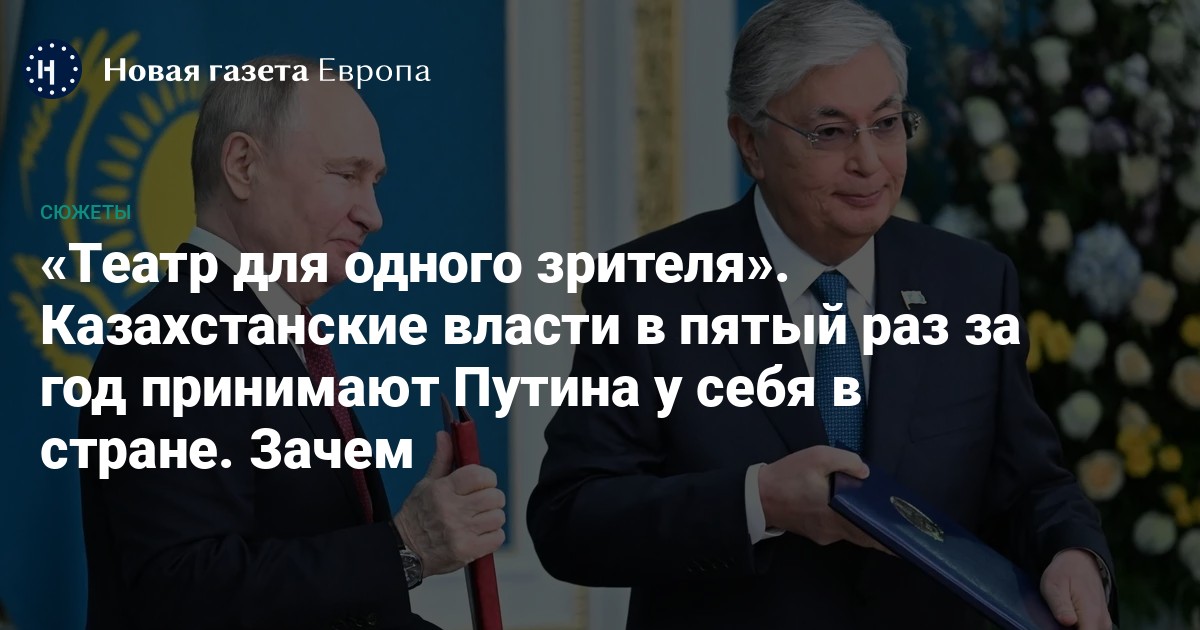 Президент России Владимир Путин приехал в Казахстан и встретился с главой государства Касым-Жомартом Токаевым. Они провели переговоры, подписали несколько документов, а также поучаствовали в Форуме межрегионального сотрудничества. Это уже пятый визит российского президента в Казахстан за последний год. Важное ли это событие, и что оно означает для обеих сторон, «Новой газете Европа» объясняет эксперт.