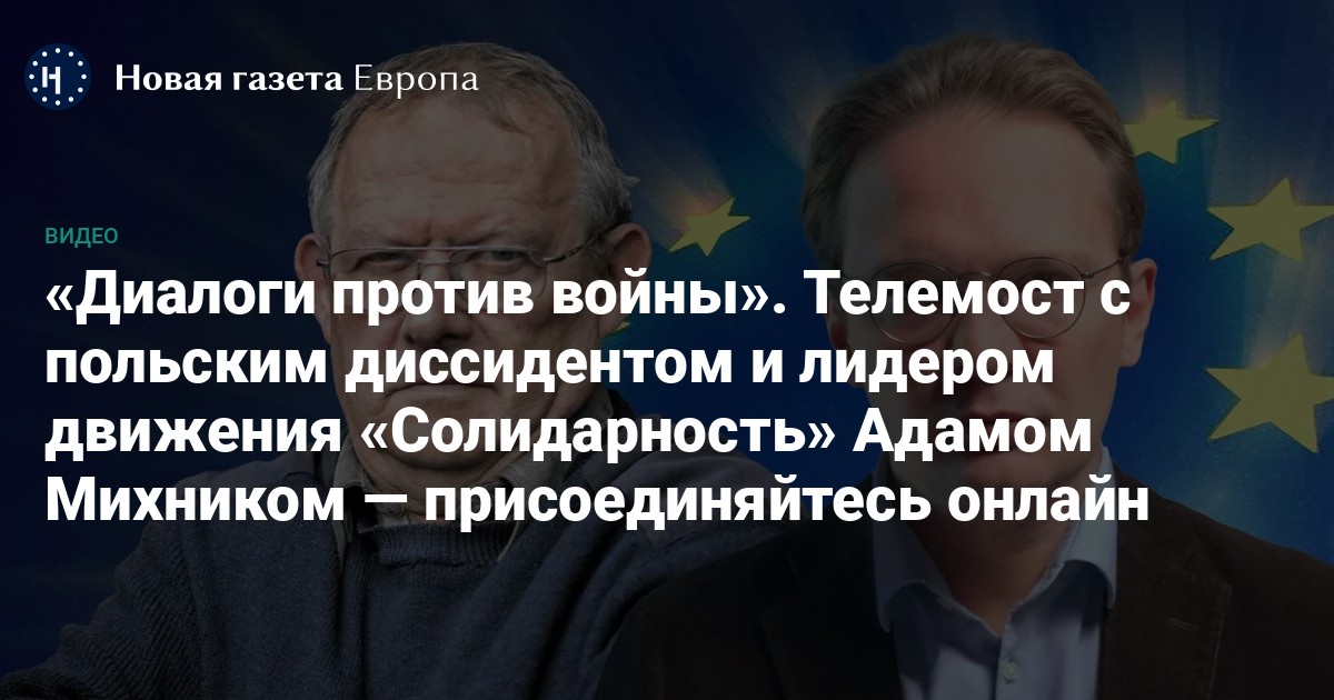 Наш второй телемост с главным редактором «Газеты Выборча», одним из создателей польского движения «Солидарность» и отцом-основателем современной свободной Польши Адамом Михником состоится в пятницу, 10 ноября, с 17:00 до 18:00 (по Москве). Смотрите трансляцию на нашем ютуб-канале