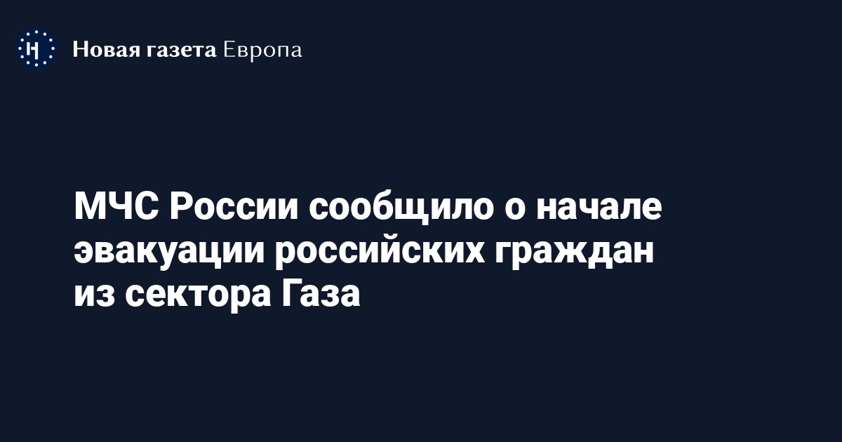МЧС России сообщило о начале эвакуации российских граждан из сектора Газа.