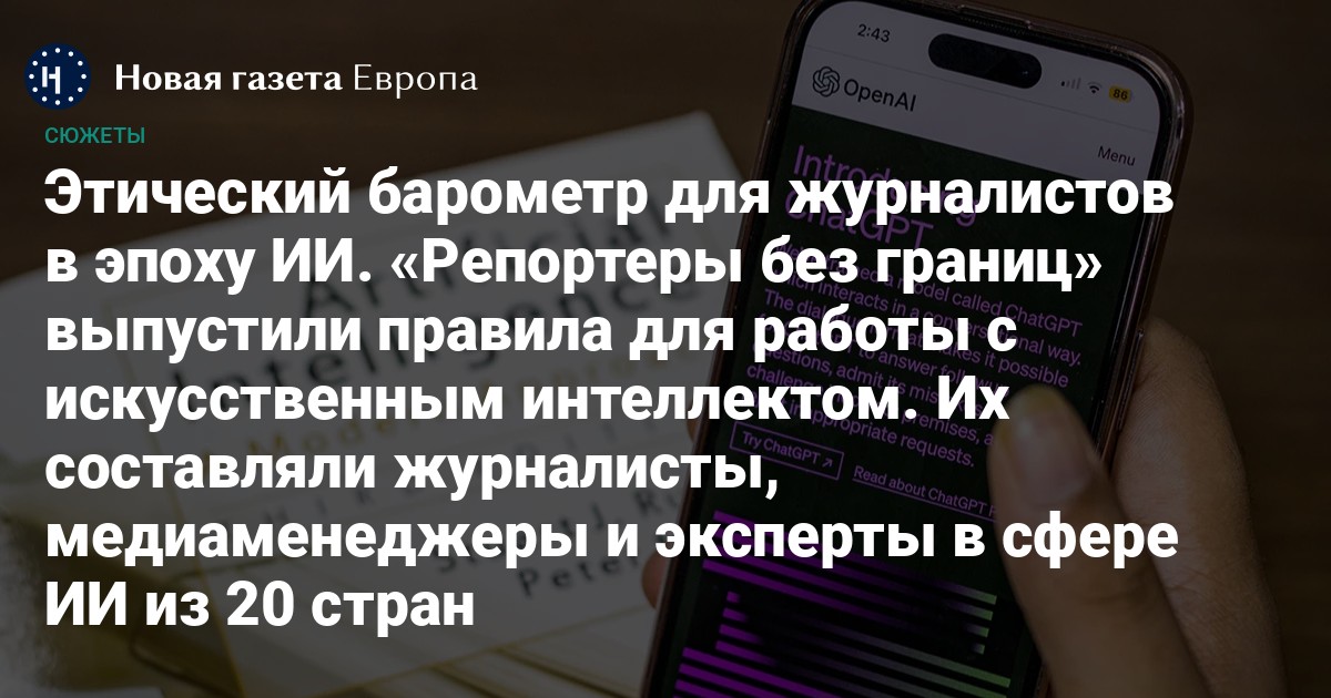 В минувшую пятницу, 10 ноября, международная организация «Репортеры без границ» опубликовала Парижскую хартию по искусственному интеллекту и журналистике — свод из десяти правил, призванных задать для отрасли этические рамки при работе с инструментами ИИ, определить набор базовых принципов для защиты качества новостей и информации в эпоху искусственного интеллекта. «Социальная роль журналистики заключается в том, чтобы выступать надежным посредником для общества и отдельных граждан, и это краеугольный камень демократии […]. Системы искусственного интеллекта способны в этом помочь, но только в том случае, если они используются прозрачно, справедливо и ответственно […]. Подтверждая эти принципы, мы выступаем за независимую журналистику и обязуемся предоставлять достоверные новости в эпоху ИИ», — говорится в преамбуле документа, приуроченного к стартовавшему в тот же день в Париже Форуму мира..