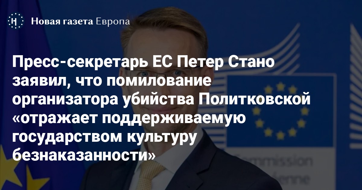 Главный пресс-секретарь Евросоюза по иностранным делам и политике безопасности Петер Стано прокомментировал помилование одного из организаторов убийства Анны Политковской Сергея Хаджикурбанова.
