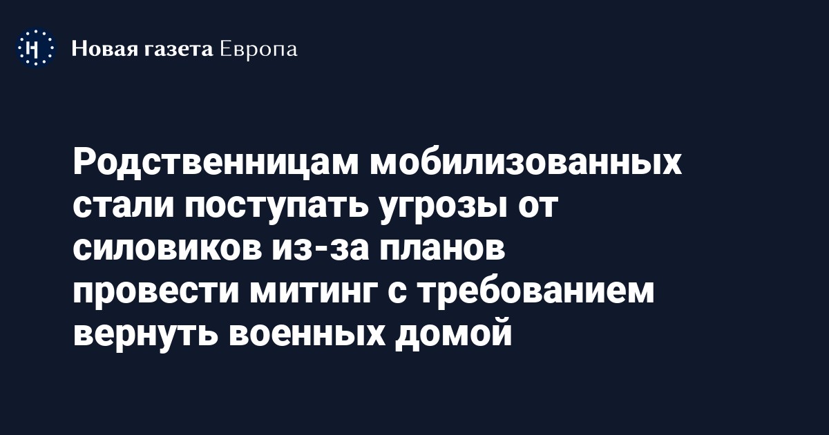 Также сообщается об угрозах родственницам мобилизованным из Красноярского края. Как рассказала изданию одна из женщин, полицейские приходят к «тем, кто был за митинги»: