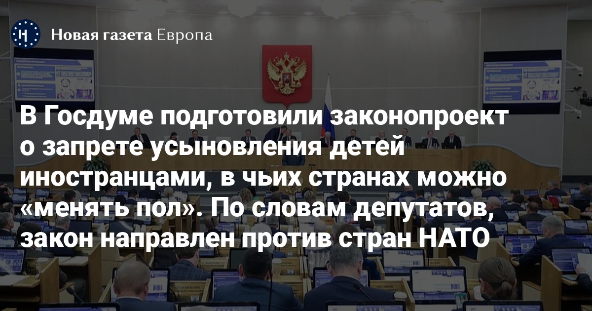 Парламентарий уточнил, что закон в первую очередь направлен на запрет усыновления детей странами НАТО, поскольку, по его словам, «большинство стран, которые разрешают усыновление и однополые браки, являются членами Альянса». При этом точный перечень стран депутат не назвал.