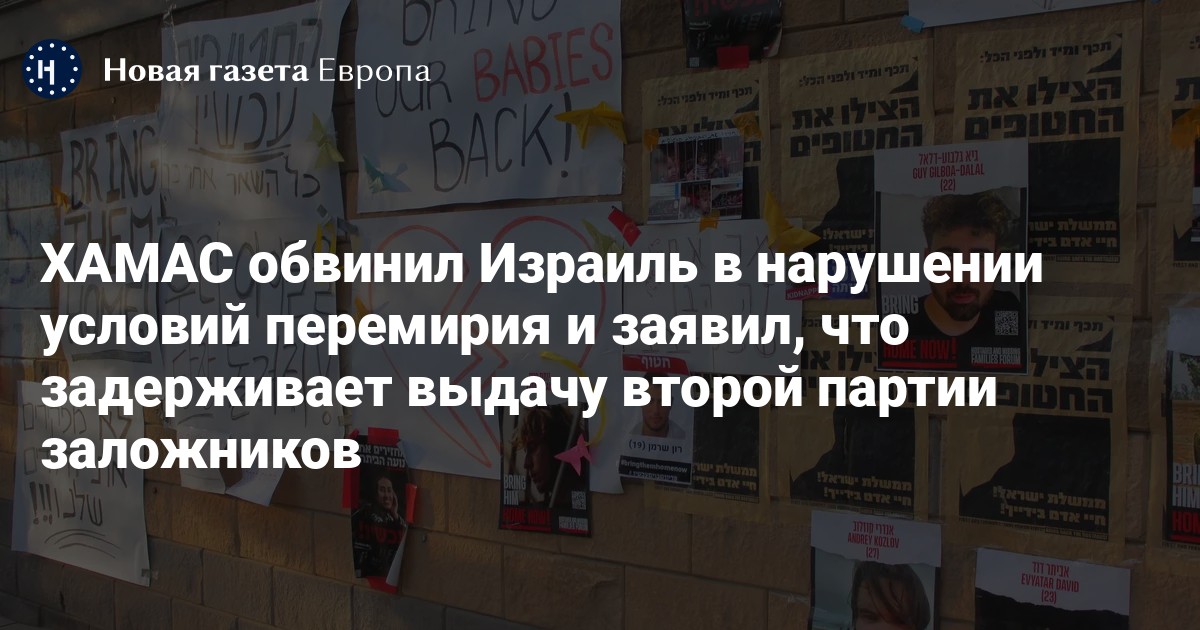 ХАМАС обвинил Израиль в нарушении условий перемирия и заявил, что задерживает выдачу второй партии заложников, пишет Haaretz