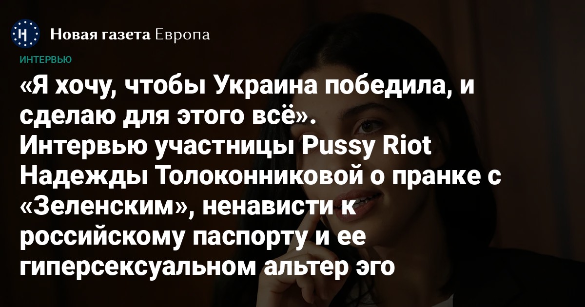 22 ноября российские пранкеры Вован и Лексус опубликовали два разговора с участницей группы Pussy Riot Надеждой Толоконниковой, которая, принимая собеседников за президента Украины Владимира Зеленского и экс-министра культуры Украины Александра Ткаченко, рассказывает о своей финансовой помощи ВСУ и желании получить украинский паспорт. Слова о том, что Толоконникова пожертвовала собранные ею в начале войны 7 млн долларов на нужды армии Украины, а не на гуманитарную помощь, вызвали скандал в соцсетях. Журналист Илья Азар поговорил с Толоконниковой о звонке Вована и Лексуса, хотя участница Pussy Riot призналась, что ей «больно и некомфортно» это обсуждать, о ее последней акции «Пепел Путина», OnlyFans, ненависти к российскому паспорту и о перспективах возвращения в постпутинскую Россию.