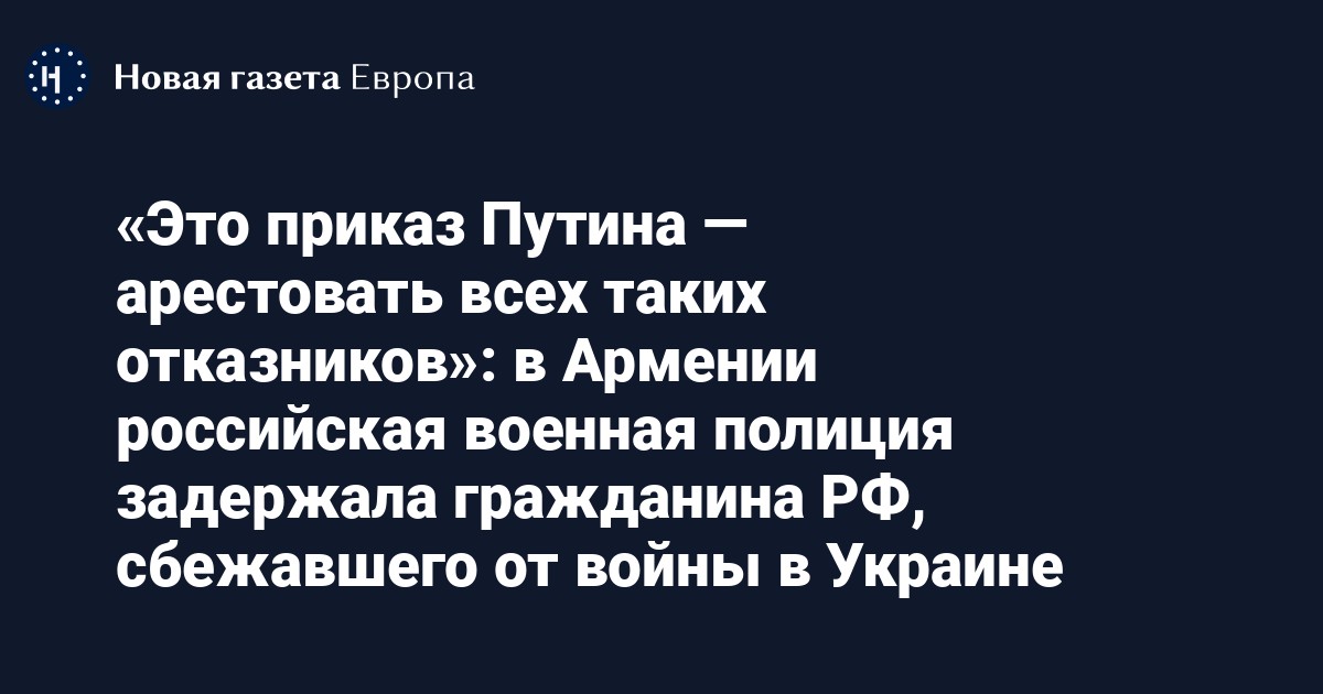Российские военные задержали в Армении гражданина РФ Дмитрия Сетракова, который сбежал от войны в Украине. Об этом «Новой газете Европа» рассказал основатель проекта «Идите лесом» Григорий Свердлин.