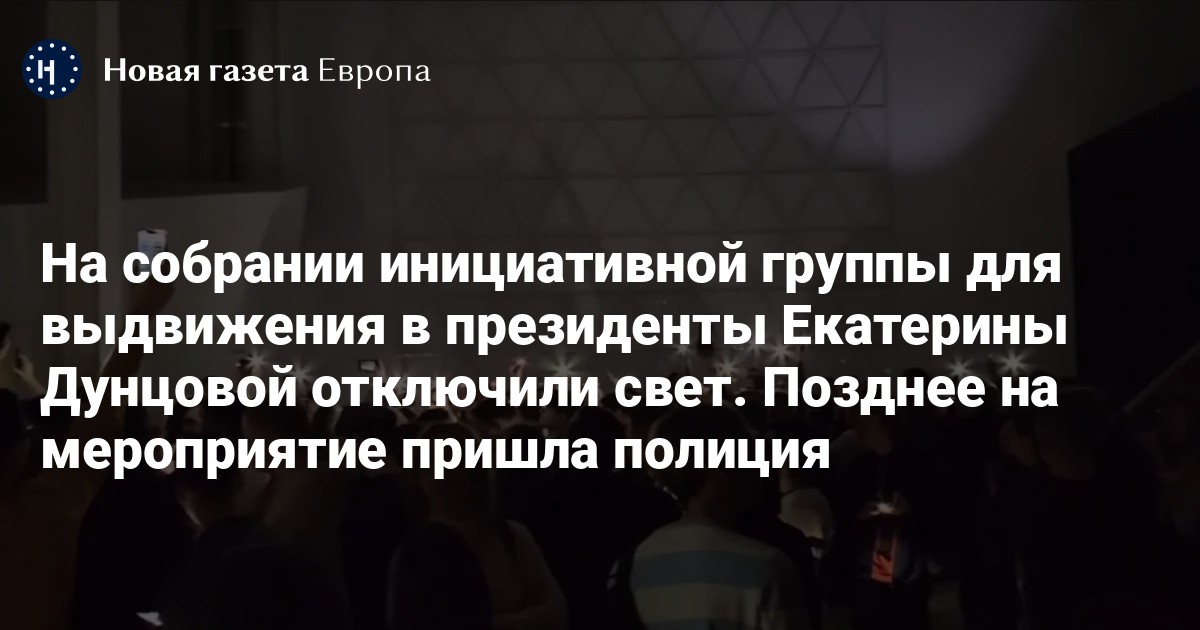 На собрании инициативной группы для выдвижения в президенты России журналистки Екатерины Дунцовой отключили свет. Об этом сообщила группа поддержки Дунцовой.