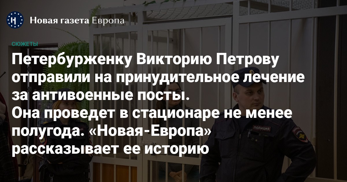 Обвиняемую в «фейках» о российской армии (ст. 207.3 п.2 ч. «д» УК РФ) 29-летнюю петербурженку Викторию Петрову суд вместо реального лишения свободы, как и настаивало обвинение, отправил на принудительное лечение в психиатрическую больницу. Она проведет в стационаре неопределенный срок, но не менее шести месяцев. Это первое подобное решение в России по делам о военных «фейках».