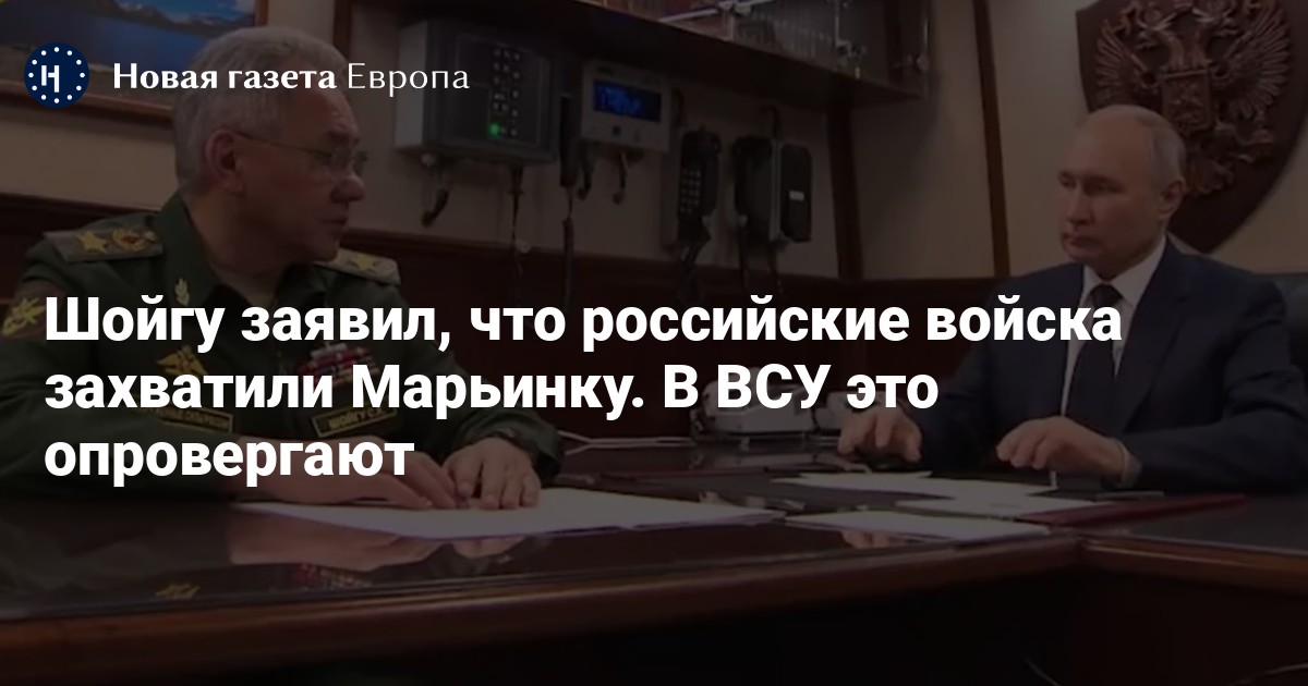 «Владимир Владимирович, у нас в ходе активных наступательных действий штурмовые отряды группировки «Южная» сегодня полностью освободили населенный пункт Марьинка, это в пяти километрах от Донецка», — сказал Шойгу.