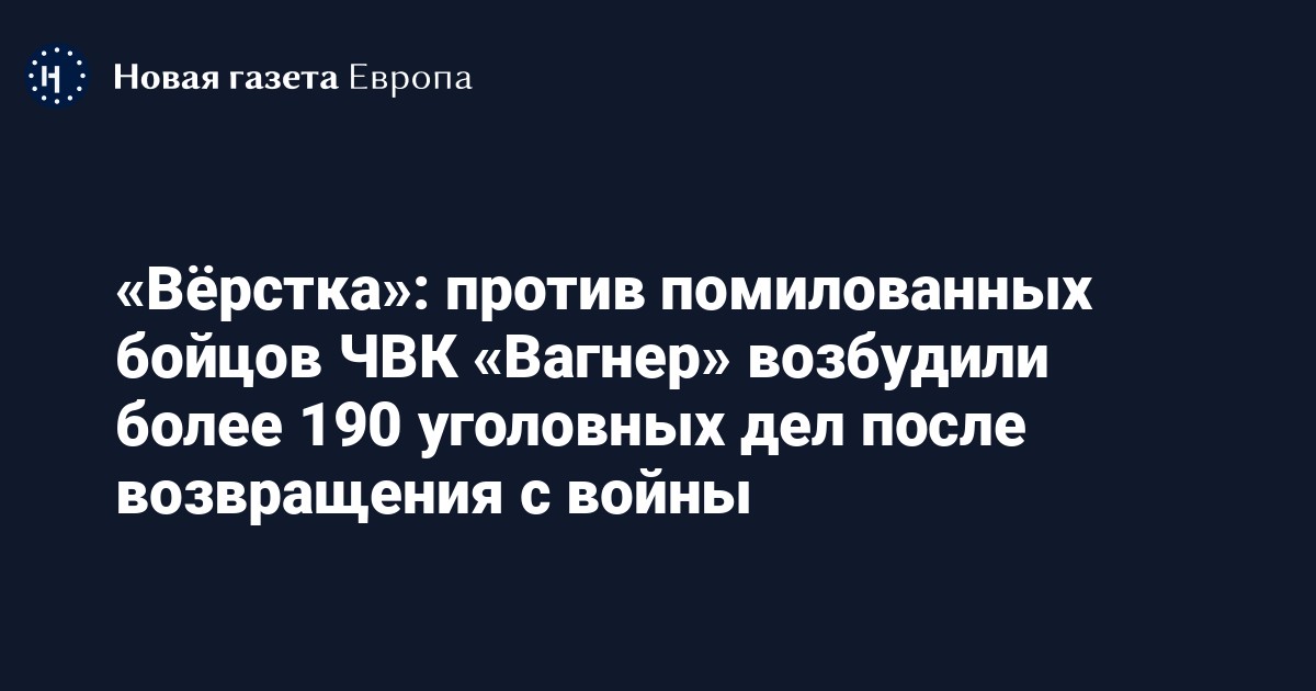 В 2023 году в отношении бывших российских заключенных, которых отправили на войну с Украиной в составе ЧВК «Вагнер» и помиловали указом президента РФ Владимира Путина, возбудили более 190 уголовных дел после возвращения в Россию. Об этом говорится в исследовании «Вёрстки».