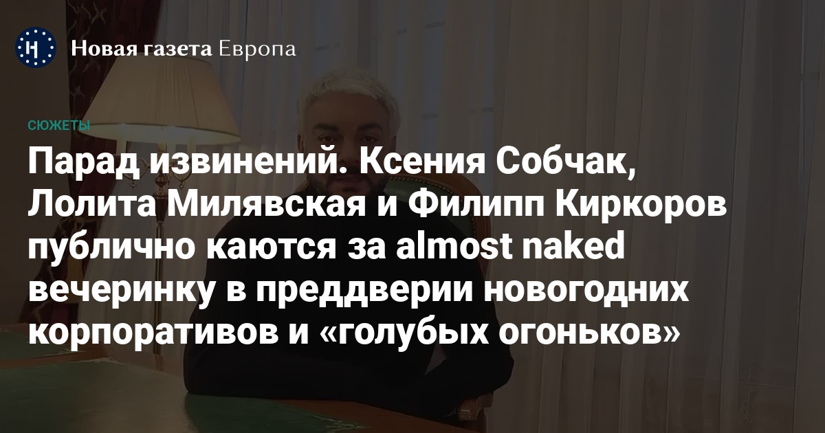 Кроме того, гости, включая Филиппа Киркорова, Диму Билана и Лолиту Милявскую, устроили серию публичных покаяний — как раз незадолго до начала новогодних корпоративов и показа праздничных программ на телеканалах.