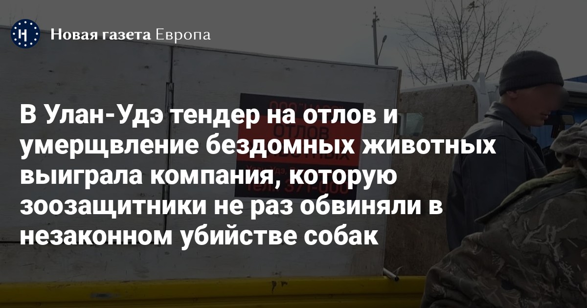 Администрация Улан-Удэ заключила первые контракты на «выполнение мероприятий <…> по обращению с животными без владельцев», которые подразумевают убийство агрессивных и «невостребованных» бездомных собак. Соответствующие документы «Новая-Европа» обнаружила на портале госзакупок.