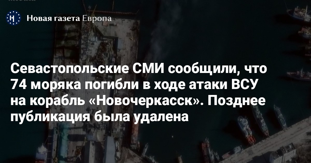 Сайты «Независимое телевидение Севастополя» и «Новости Севастополя» сообщили со ссылкой на пресс-службу Черноморского флота, что 74 моряка погибли и 27 пострадали в ходе атаки ВСУ 26 декабря на корабль «Новочеркасск». Позднее публикация с первого сайта была удалена.