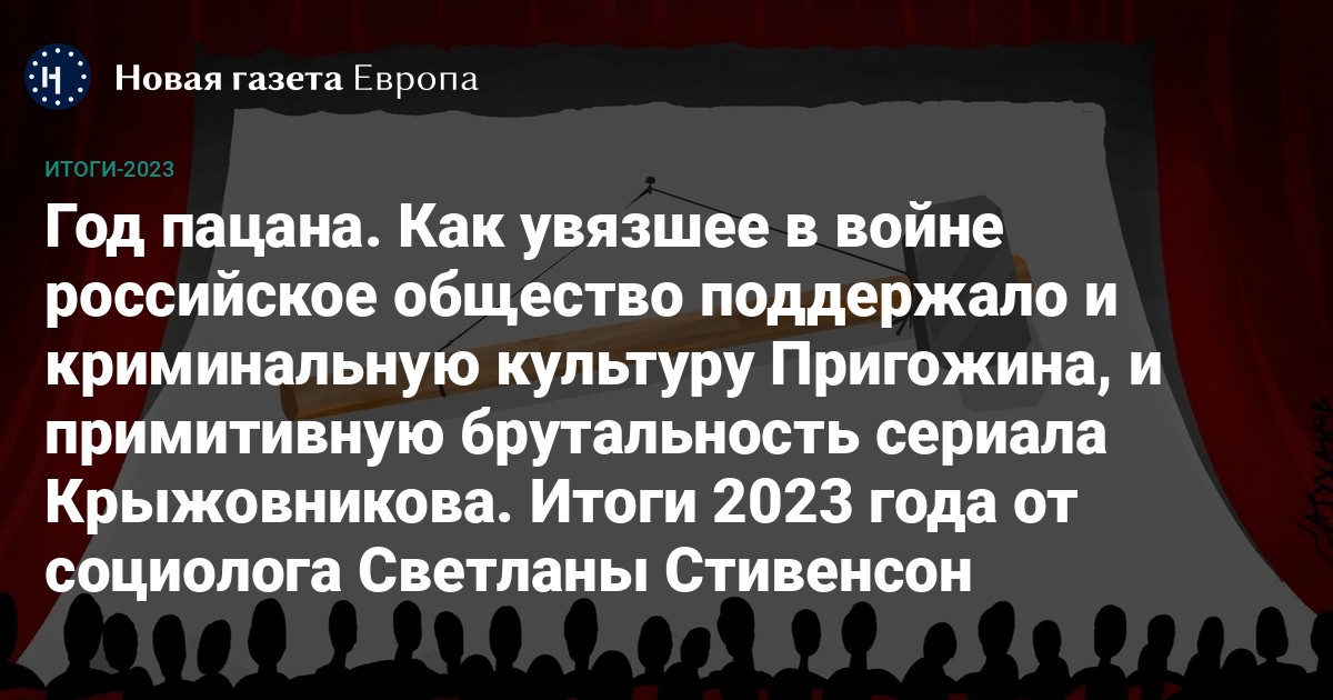 Российское государство ввело в свой пантеон героев бывших уголовников, воевавших в Украине, и их боевого предводителя, Евгения Пригожина. Затем оно демонстративно расправилось с Пригожиным — по криминальным же понятиям. А под конец года выпустило сериал, в котором уличные пацаны конца 80-х, превратившие в ад свою жизнь и жизнь окружающих, были показаны не просто без осуждения, а с пониманием, а порой и с восхищением.