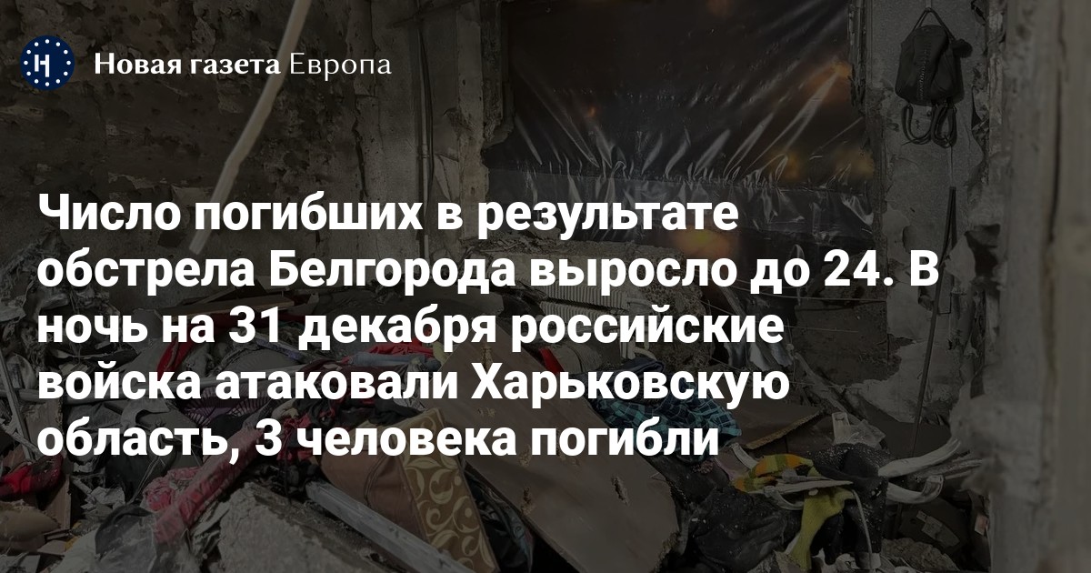 В ночь на 31 декабря российские войска атаковали Харьковскую область, в результате чего 3 человека погибли, 28 — пострадали.