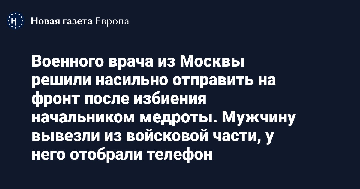 Военного врача из Москвы решили насильно отправить на фронт после избиения начальником медроты
