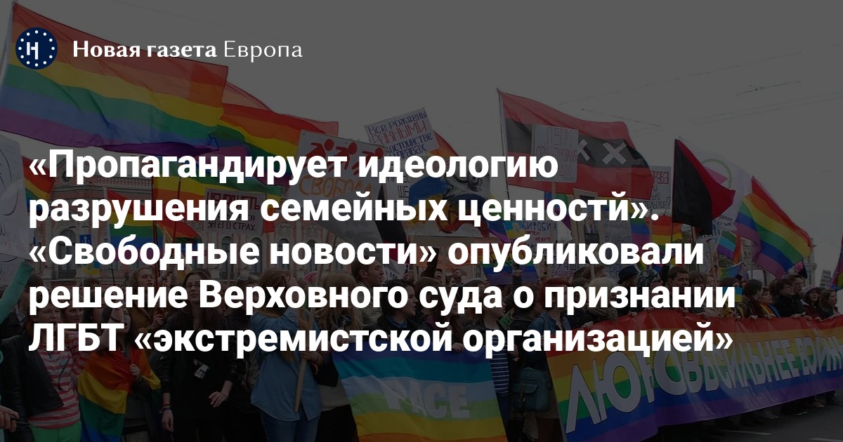 Саратовское издание «Свободные новости» опубликовало полный текст решения Верховного суда РФ о признании экстремистской организацией «Международного общественного движения ЛГБТ».