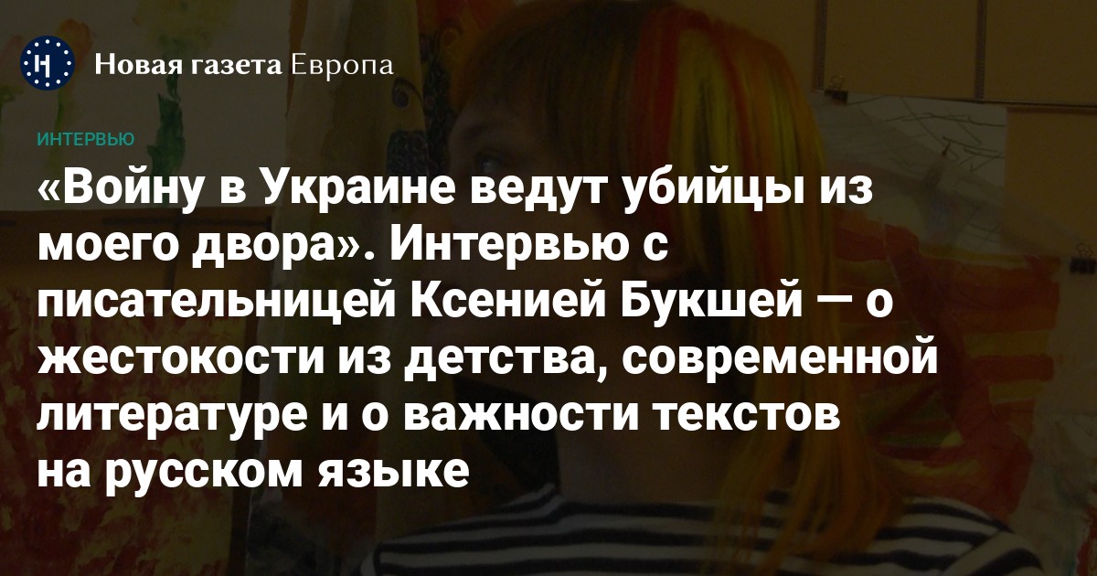 Ксения Букша с 14 лет пишет книги: прозу, стихи, с 18 — публикуется в российских издательствах. Неоднократная участница шорт-листов «Большой книги», «Ясной Поляны» и премии «Нос», в 2014 году она стала лауреатом «Национальный бестселлер». Сейчас писательнице 40 лет, у нее четверо детей, она живет в Черногории и верит в победу Украины.