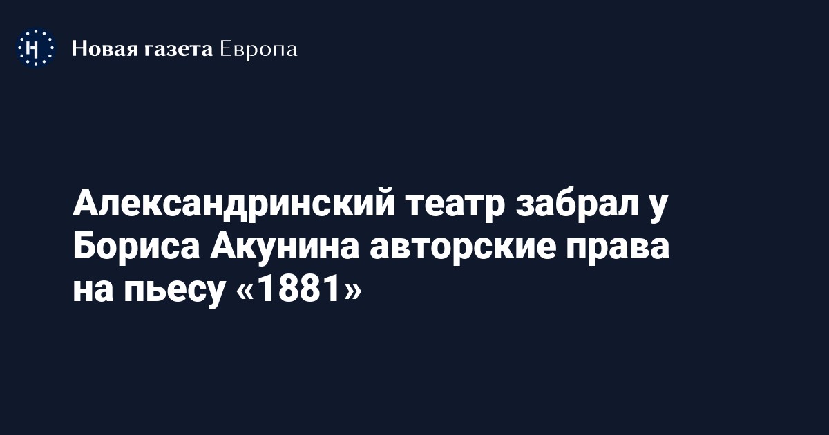 Администрация Александринского театра направила Борису Акунину (Георгию Чхартишвили) письмо, в котором объявила, что авторство пьесы «1881» принадлежит творческой группе постановки театра и режиссеру спектакля. Об этом писатель рассказал в своем телеграм-канале.