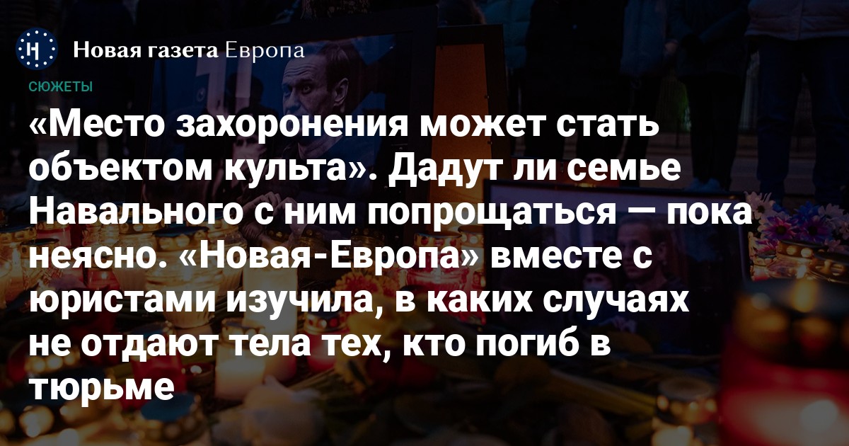 Что произойдет с телом Навального, также пока непонятно. Российские службы исполнения наказаний, согласно практике, могут просто не отдать тело того, кто погиб в колонии.