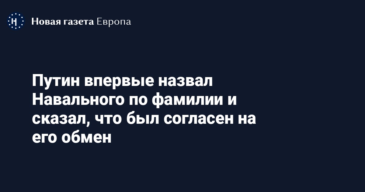 Кроме того, Путин заявил, что был согласен обменять оппозиционера на заключенных на Западе.