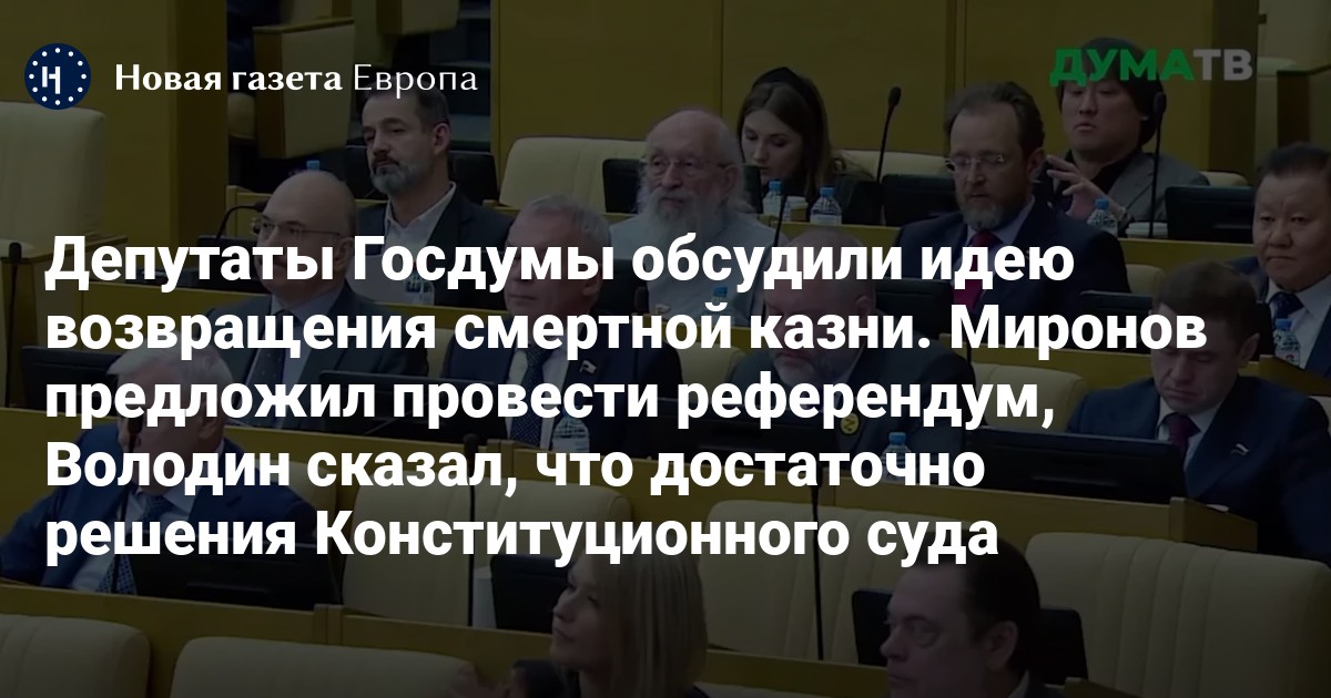 «У нас и в Конституции, и в уголовном законодательстве никто смертную казнь не отменял, есть решение Конституционного суда, который отложил вынесение такого приговора, поэтому не надо никаких референдумов, достаточно решения в этом вопросе Конституционного суда», — сказал Володин.