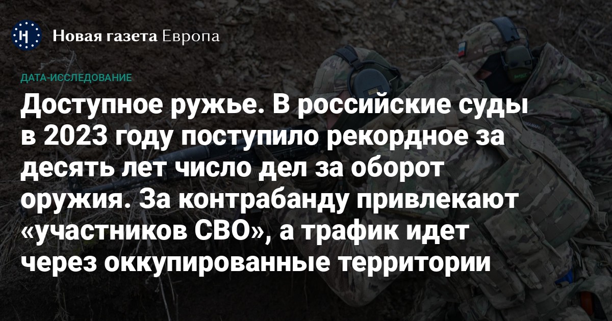 В 2023 году в военные суды поступило 179 дел за оборот оружия — это самое большое число как минимум с 2014 года. Обвиняемыми уже стали 78 «участников СВО». Через оккупированные территории они перевозят оружие с фронта — больше всего приговоров вынесли суды Ростовской области, в статистику которой попадают дела против военнослужащих из «новых регионов». Часть вывезенного из Украины оружия оседает на черном рынке: сейчас там можно найти «потерянные противником» автоматы, боеприпасы и артиллерийские снаряды, выяснила «Новая-Европа».