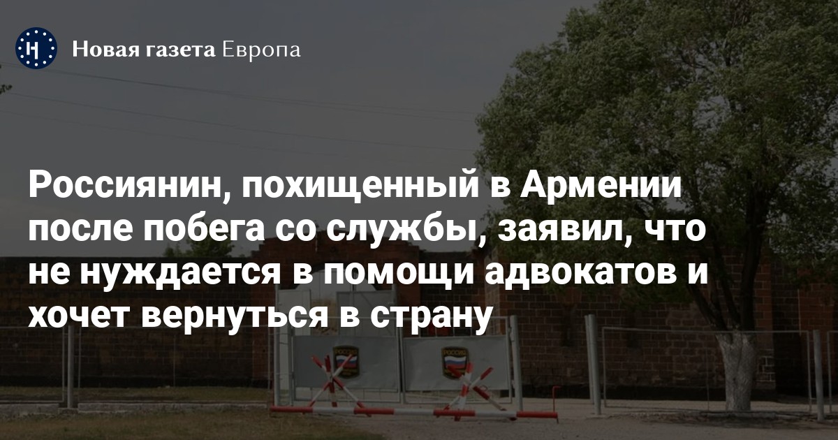 Адвокаты в Армении смогли встретиться с задержанным накануне россиянином Анатолием Щетининым, который скрывался в Армении после отказа от военной службы. В разговоре мужчина сказал, что не нуждается в помощи и хочет вернуться в Россию, пишет правозащитная организация «Общественный вердикт».