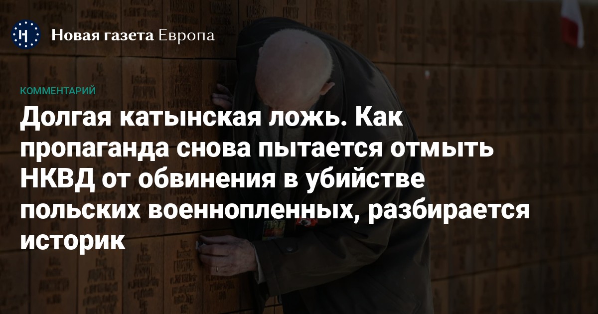 Риторика «новых публикаций» не отличается от прежней позиции СССР, когда советская власть возлагала вину за расстрел польских военнопленных на нацистов и в течение полувека рассказывала об этом всему миру и собственным гражданам. Это явление закрепилось в историографии под термином «катынская ложь».