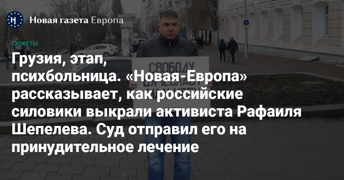 Пропавшему в Грузии российскому оппозиционному активисту Рафаилю Шепелеву из Свердловской области суд назначил принудительное лечение. Его признали виновным в «участии в деятельности террористической организации» и «оправдании терроризма». По мнению сына обвиняемого, само дело против отца — спорное, а решение комиссии опирается на вырванные из контекста слова. Поместить Шепелева в психиатрическую больницу просило следствие. Медицинскую организацию, в которую отправят активиста, выберет свердловское управление ФСИН. Предварительное следствие в отношении Шепелева продолжается, а он пока остается в СИЗО. «Новая газета Европа» рассказывает, что предшествовало исчезновению активиста и как российские силовики его выкрали из-за границы.