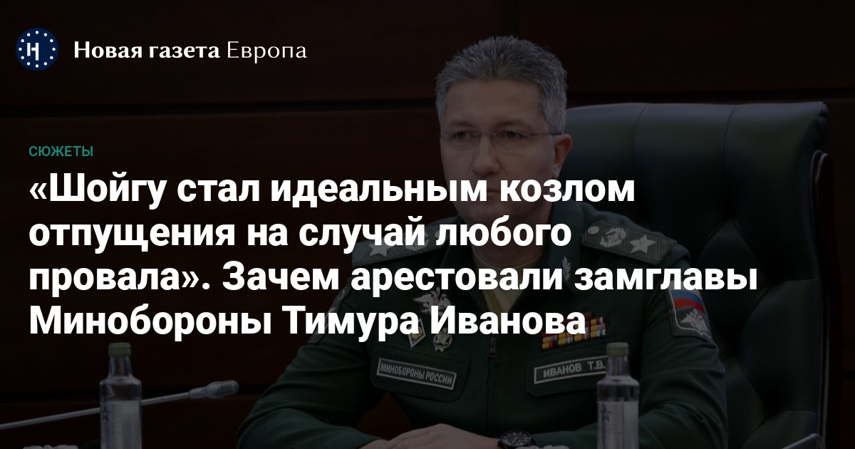 Благодаря аресту Иванова у российских властей появляется еще один рычаг давления на Шойгу, рассуждает Преображенский, предполагая, что главу Минобороны можно будет назначить ответственным за предполагаемый провал наступления или целой войны. «То есть эта ситуация делает Шойгу идеальным козлом отпущения на случай любых провалов и неудач Путина. Но это не значит, что Шойгу потеряет пост министра», — подчеркивает он.