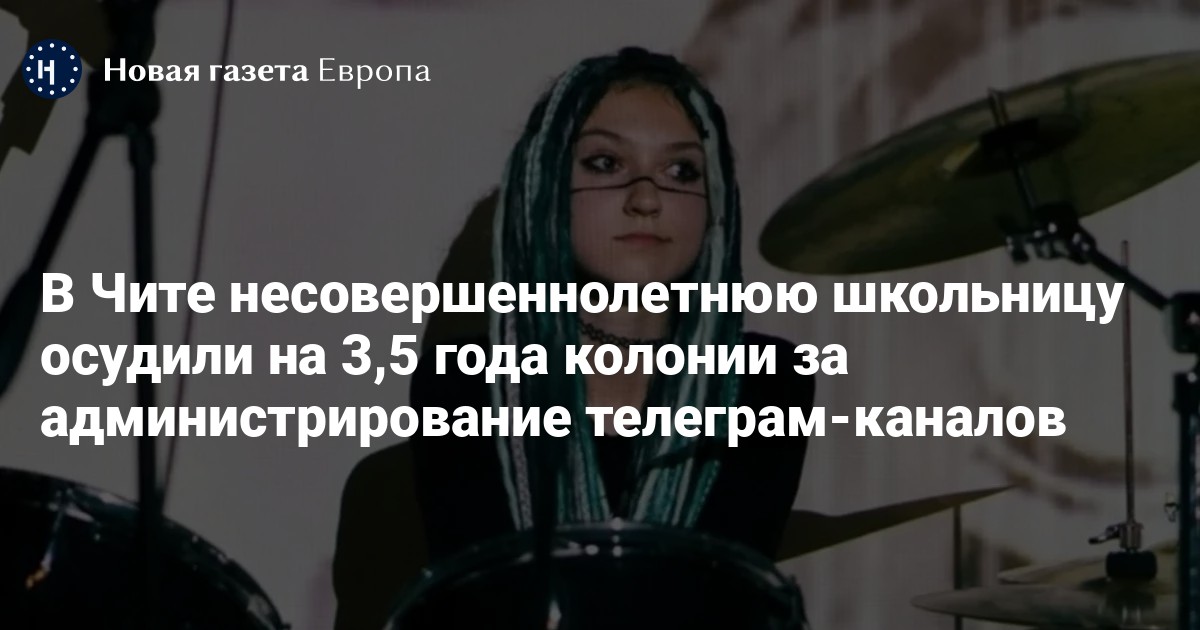 Первый окружной военный суд приговорил 17-летнюю десятиклассницу из Читы Любовь Лизунову к трем с половиной годам колонии за администрирование двух телеграм-каналов, где публиковались новости об «антивоенных акциях прямого действия». Об этом сообщает проект «Сетевые свободы».