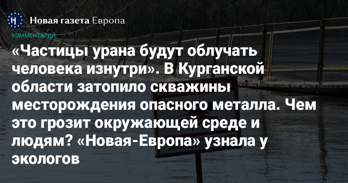 В Курганской области затопило старые скважины месторождения «Добровольное», на котором добывает уран одно из предприятий «Росатома». Территория оказалась в зоне вышедшей из берегов реки Тобол, так что металл мог попасть в воду.