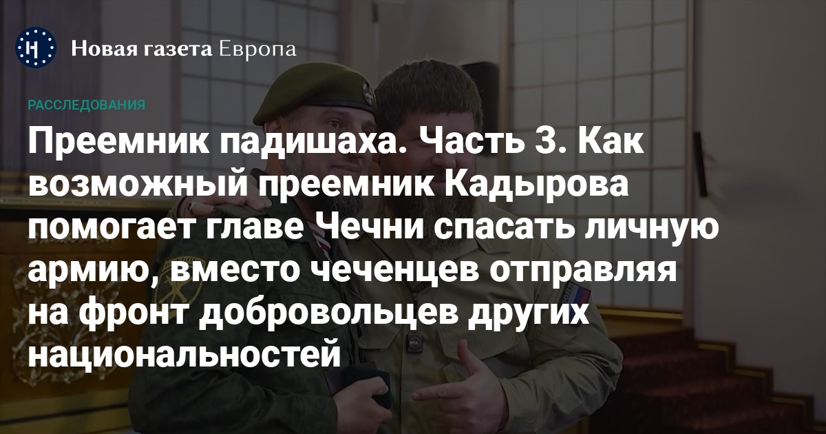В третьей серии мы рассказываем неизвестные подробности биографии одного из вероятных преемников Кадырова — Апти Алаудинова, и говорим о том, как ключевым образом на его судьбу повлияли два фактора: война Путина в Украине и отчаянное желание главы Чечни сохранить в этой войне свою личную армию.