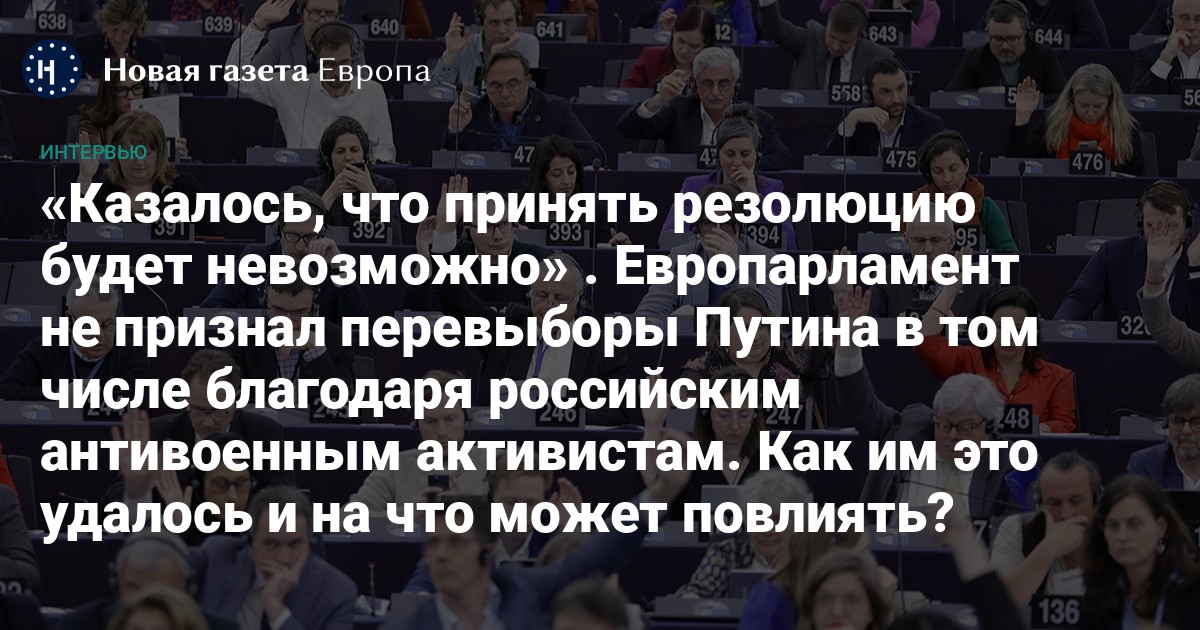 Я встречался с ассистентами, советниками, депутатами и часто использовал риторику о необходимости поддержки российских политзаключенных. Евродепутаты могут помочь им именно непризнанием президентских выборов. И я, в свою очередь, объяснял, что формат резолюции с конкретным призывом к странам — членам ЕС станет актом сильной моральной поддержки тех, кто находится в заключении у путинского режима.