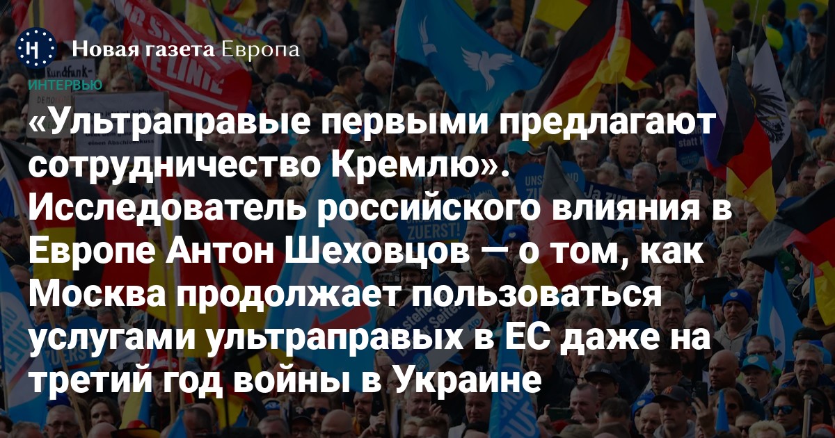Корреспондентка «Новой-Европа» поговорила с приглашенным профессором Центрально-Европейского университета и исследователем российского влияния в Европе Антоном Шеховцовым о том, почему ультраправые ищут поддержки России и может ли их усиление после выборов помочь Кремлю.