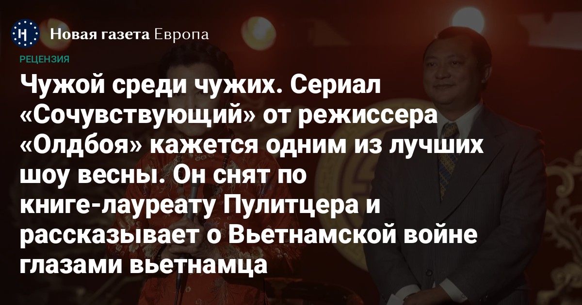 14 апреля на HBO стартовал «Сочувствующий» — многосерийная ретро-комедия по мотивам одноименного бестселлера Вьет Тхань Нгуена. Первые три серии снял Пак Чхан-ук («Олдбой», «Решение уйти»), а оскароносный актер Роберт Дауни-младший сыграл сразу нескольких персонажей.
