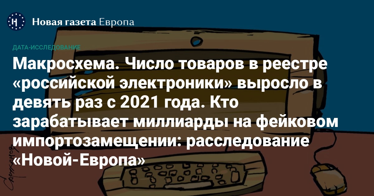 Вице-премьер Дмитрий Чернышенко, выступая перед российскими производителями электроники в феврале 2022 года, предложил «включить режим волшебной палочки, открыть сознание и попытаться добиться суверенитета в электронике через восемь лет». С тех пор официальный перечень «российской электроники» расширился в разы, а производители этих товаров зарабатывают десятки миллиардов рублей на госзаказе. Как выяснила «Новая-Европа», «отечественные» производители электроники закупают за границей как комплектующие, так и готовые изделия, которые потом выдают за собственные разработки. Рассказываем, как устроено фейковое импортозамещение и кто стал его главными бенефициарами.