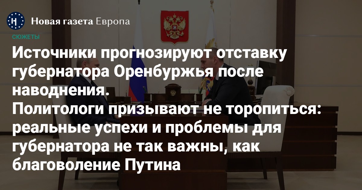 Оба политолога сходятся во мнении, что пока невозможно предсказать, будет ли Денис Паслер досрочно отправлен в отставку в ближайшее время. Николай Петров отмечает, что сейчас у Кремля есть более важные дела, в первую очередь переформатирование Правительства и Администрации президента из-за нового срока Владимира Путина, — «в таких условиях руки до регионов вряд ли будут доходить». Федор Крашенинников предполагает, что пока у властей Оренбургской области получается купировать ситуацию с паводками таким образом, что народное недовольство не распространяется на федеральные власти: «Паводок закончился, никто не восстал, “долой Путина” не кричал. Молодец!»