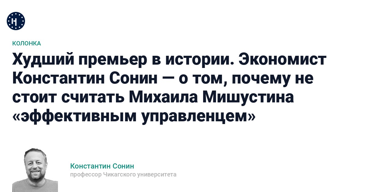 Эксперты издания The Bell подготовили оценку первых лет Мишустина, которая звучит на удивление позитивно. Не могу согласиться: я считаю, что Мишустин — худший премьер-министр в истории России. Хвалить премьер-министра за то, что он справлялся с какими-то чисто техническими (фактически секретарскими) обязанностями, — это значит унижать Россию.