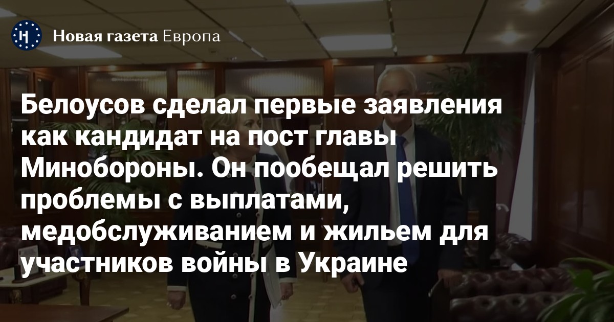 Белоусов сделал первые заявления как кандидат на пост главы Минобороны. Он пообещал решить проблемы с выплатами, медобслуживанием и жильем для участников войны в Украине