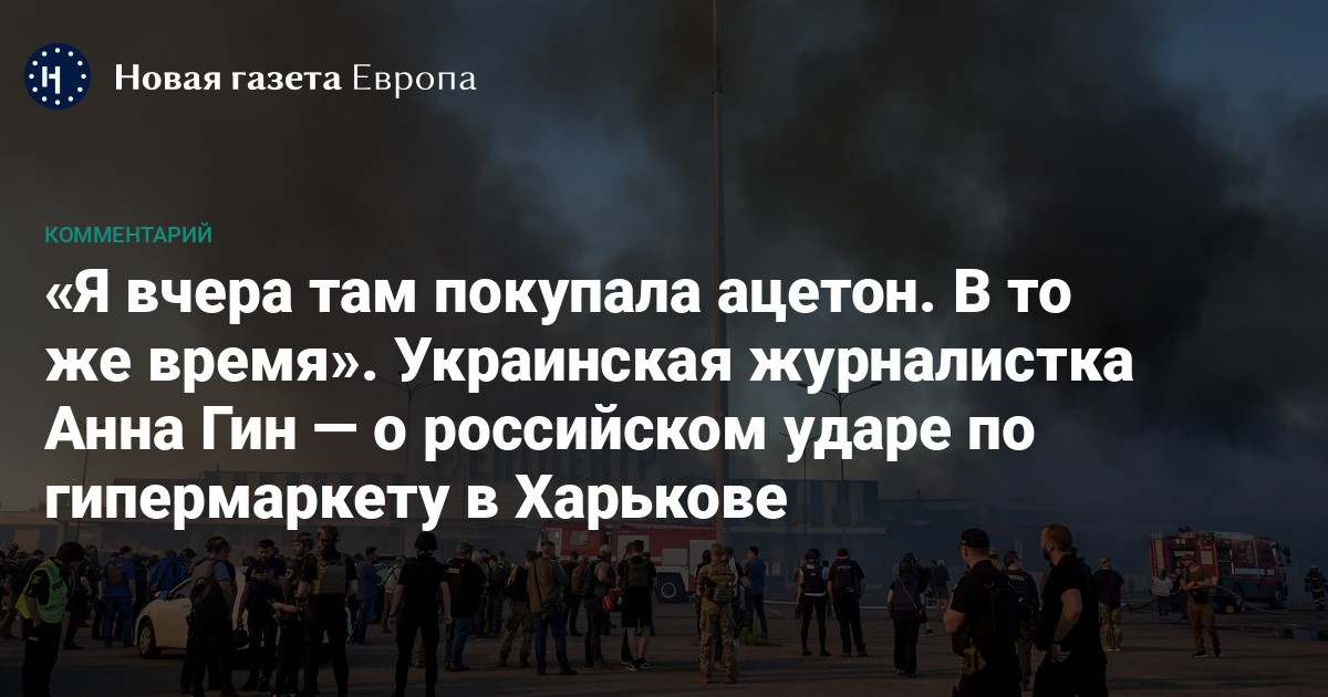 В гипермаркете снаряд попал в помещение с лакокрасочными материалами, что мгновенно вызвало мощный пожар. Власти попросили харьковчан закрыть окна, рассказывает «Новой газете Европа» украинская журналистка и писательница Анна Гин. Она живет в том же районе, где находится «Эпицентр».